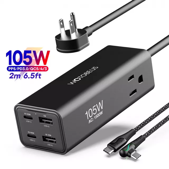 Don’t juggle multiple chargers — simplify your life with the 105W GaN3 6-in-1 Fast Charging Power Station. Keep your devices powered, organized, and ready for anything. Plug in, power up, and experience the future of fast charging.