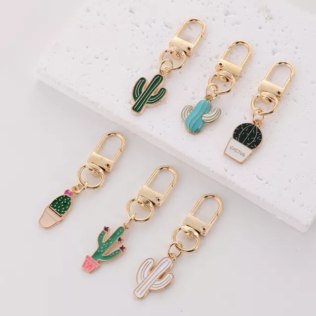 Bring a playful vibe to your accessories with this 6-piece Alloy Cactus Keychain Set. Each piece features an adorable cactus design that blends fun, fashion, and personality in one cute charm. Made from durable zinc alloy with a gold-tone finish, these keychains are not only stylish but built to last. Perfect for adding a bit of sparkle and joy to your keys, purse, or backpack, they make every day feel brighter.