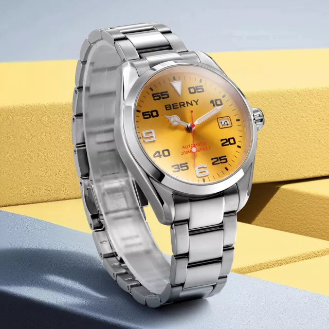 Crafted with a solid stainless steel case and bracelet, this watch combines durability with a refined finish. The curved sapphire glass lens with anti-reflective coating ensures clarity under any lighting, while its scratch-resistant surface keeps the watch looking pristine. Engineered for real divers, it offers an impressive water resistance of up to 660 feet (20 ATM), making it perfect for swimming, snorkeling, and recreational diving.