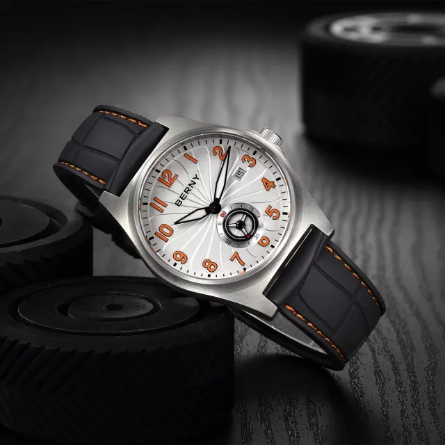 This men’s watch is made to move with you — whether you’re at the office, in the gym, or exploring the outdoors. With 10ATM (100 meters) water resistance, it’s ready for swimming, showering, and unexpected rain. The automatic self-winding movement ensures accurate timekeeping without the need for batteries, while the sapphire crystal glass with an anti-reflective coating protects the dial from scratches and glare. The fluororubber strap or titanium bracelet offers versatility for both active and casual settings.