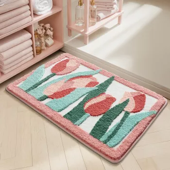 Soft Tufted Floral Stripe Bath Mat – Anti-Slip Aesthetic Tulip Rug