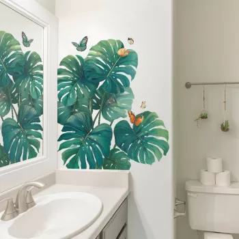 Large Green Monstera Leaf Wall Decal – Removable Plant Wall Art