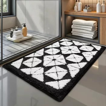 Black and White Geometric Tufted Bathroom Mat – Soft Non-Slip Modern Rug