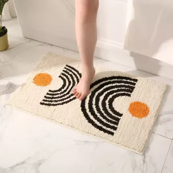 Retro Geometric Tufted Bathroom Mat – Soft Non-Slip Aesthetic Rug