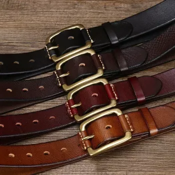 Handmade Retro Copper Buckle Full-Grain Leather Men’s Jeans Belt