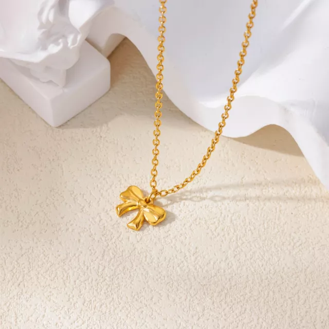 Designed for women and girls who adore graceful accessories, this necklace captures the essence of subtle luxury. The gold-plated stainless steel ensures a lasting shine and resistance to tarnish, allowing you to enjoy its beauty for years. Whether you’re dressing up for a romantic dinner, a party, or simply enhancing your casual outfit, this bowknot necklace is the ideal finishing touch.