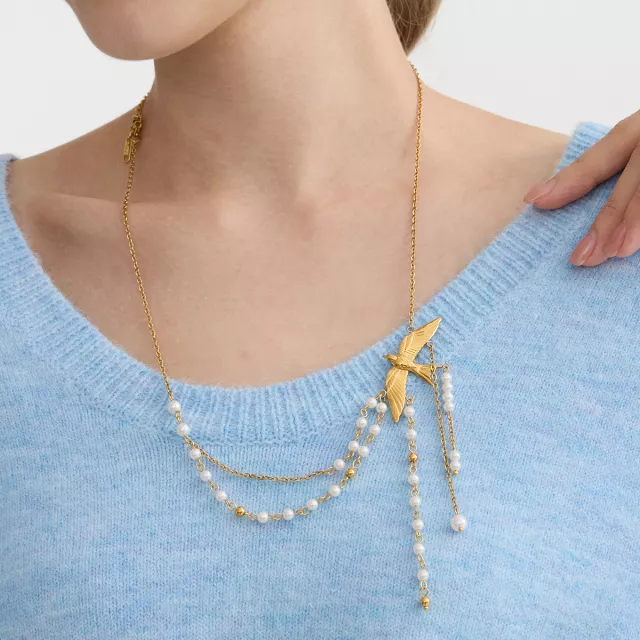 Add the Elegant Swallow Bird Pearl Tassel Necklace to your collection today and let your elegance speak for itself.