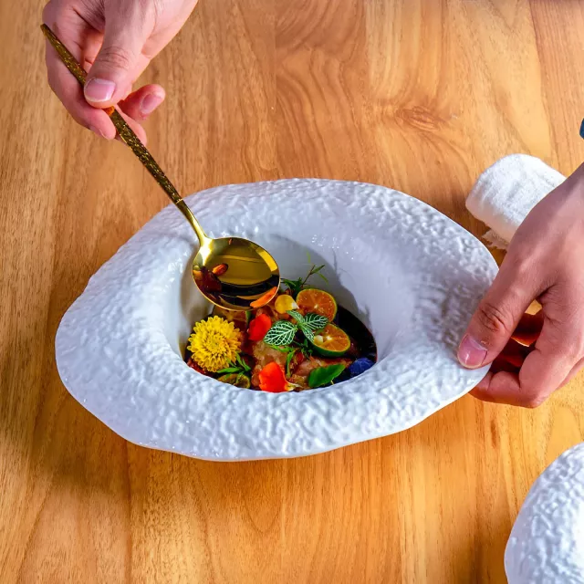 This plate isn’t just about serving food—it’s about creating moments. Whether you’re enjoying a quiet morning meal, plating a colorful fruit salad, or setting the table for guests, its refined white ceramic and stylish rock pattern elevate every presentation. The smooth surface ensures your meals look as good as they taste, while its sturdy build provides long-lasting use. Each plate is a subtle blend of artistry and functionality, designed to make your dining experience feel special every time.