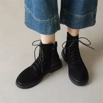 2025 Women’s Suede Lace-Up Loafers – Casual Retro Flats for Spring & Autumn