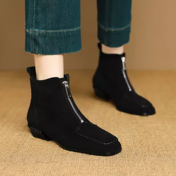 Women’s Western Suede Ankle Boots with Square Toe & Kitten Heels