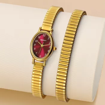 Luxury Gold Women’s Stretch Bangle Watch – Elegant Easy-Read Quartz Timepiece