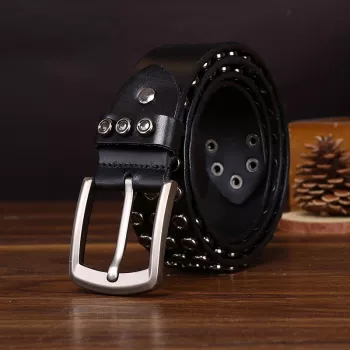 Men’s 1.5 Inch Punk Motorcycle Belt with Rivet Details