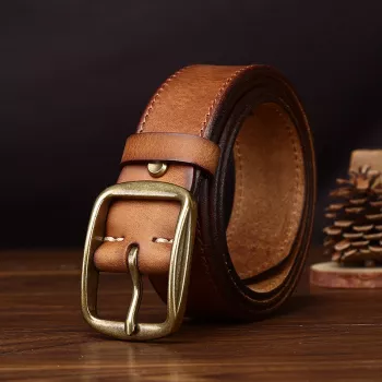 Men’s 1.3 Inch Genuine Leather Belt with Pin Buckle
