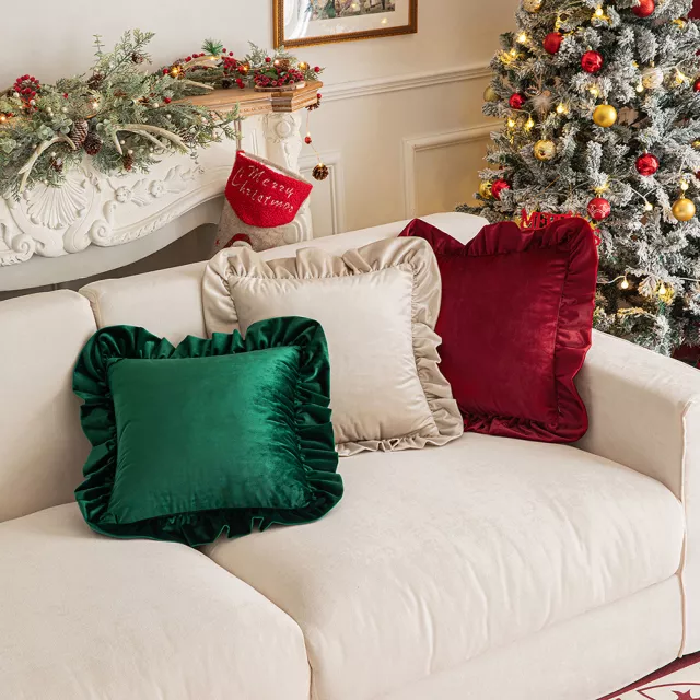 Bring timeless French charm and a touch of cozy sophistication to your home with this velvet ruffled edge throw pillow cover. Designed in a stunning red and green palette, it adds warmth and texture to any sofa, bed, or window seat. The soft, velvety feel and elegant ruffle trim create an inviting accent piece that transforms any room into a stylish retreat.