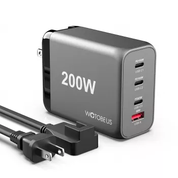 200W GaN 4-Port USB-C Fast Wall Charger with PD & QC Quick Charge