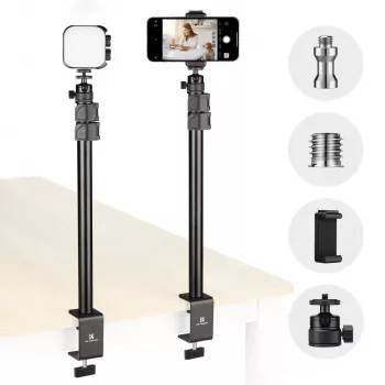 Adjustable Camera Desk Mount with 360° Ball Head & Phone Holder