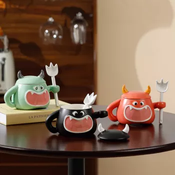 Creative Ceramic Mug with Lid & Spoon – Funny Aesthetic Cup for Girls