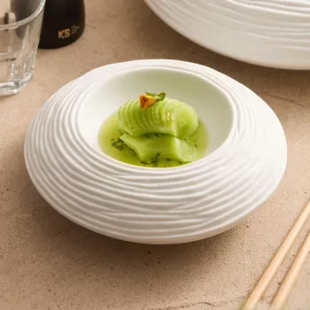 Insulated Ceramic Dessert & Sushi Plate – Modern Round Molecular Display Dish