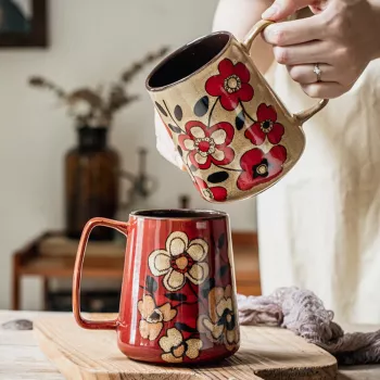 700ml Hand-Painted Ceramic Coffee Mug with Lid & Spoon – Modern Chinese Style