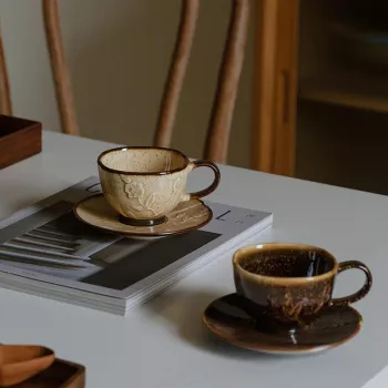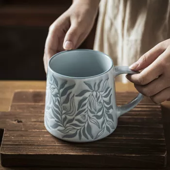 Hand-Painted Retro Magnolia Ceramic Coffee Mug – Ru Kiln Vintage Style