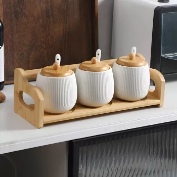 Nordic Ceramic Seasoning Jar Set – Creative Kitchen Spice Storage Box