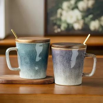 Retro Porcelain Mug with Lid and Spoon – Creative Coffee & Tea Cup