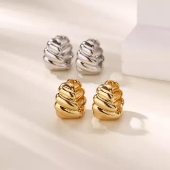 Chunky Screw Pattern Stainless Steel Hoop Earrings for Women & Girls