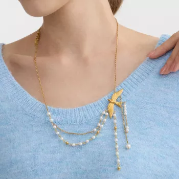 Elegant Swallow Bird Pearl Tassel Necklace – 18K Gold Plated Beauty