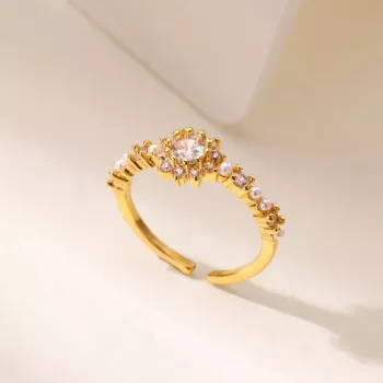 Luxury Geometric Flower Zircon Ring for Women – Adjustable Gold Crystal Ring