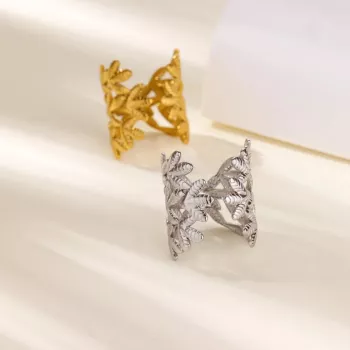 Elegant Leaf Adjustable Ring for Women – 18K Gold Plated Stainless Steel