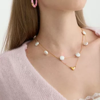 Elegant 18K Gold Plated Pearl Heart Pendant Necklace Set for Women