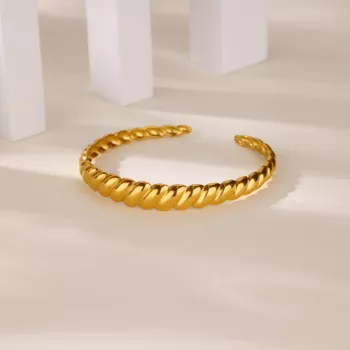 Elegant Twisted Gold Cuff Bracelet for Women – Waterproof 316L Stainless Steel