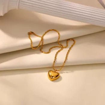 Elegant Heart Pendant Beaded Chain Necklace for Women – Stainless Steel Romantic Jewelry