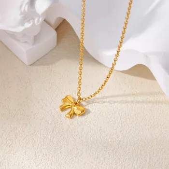Elegant 18K Gold Plated Bowknot Pendant Necklace for Women and Girls