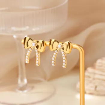 Gold Bowknot Hoop Stud Earrings for Women – Trendy Waterproof Jewelry