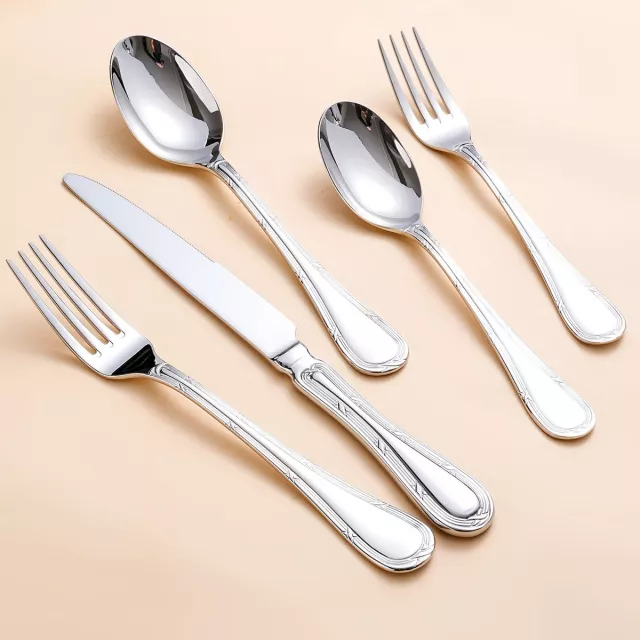 Crafted from premium 18/10 stainless steel, this flatware set is built to last. The mirror-polished finish adds a lustrous shine that resists tarnishing, rust, and fading over time. Its engraved detailing and solid pattern make it a sophisticated addition to any dining collection.