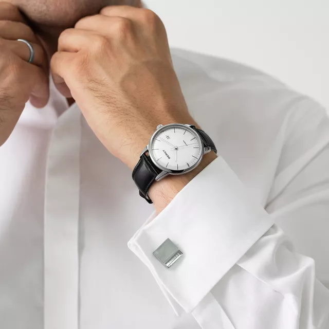 This automatic wristwatch is more than an accessory—it’s a statement of refined taste and quiet confidence. Its simple yet versatile design transitions effortlessly from the boardroom to the weekend, making it the ideal choice for any occasion. The luminous details and calendar function add practicality, while the visible movement on the back offers a glimpse into true mechanical artistry. Lightweight at just 2.47 ounces and meticulously balanced, it feels as good as it looks.
