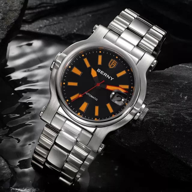 Powered by a reliable Japanese automatic movement, this self-winding mechanical watch delivers smooth precision without the need for batteries. Its super luminous hands and markers ensure crystal-clear visibility, day or night. The 41mm case provides a commanding yet comfortable fit, while the screw-in crown and 10ATM (330 ft) water resistance make it ideal for swimming, snorkeling, or everyday wear.