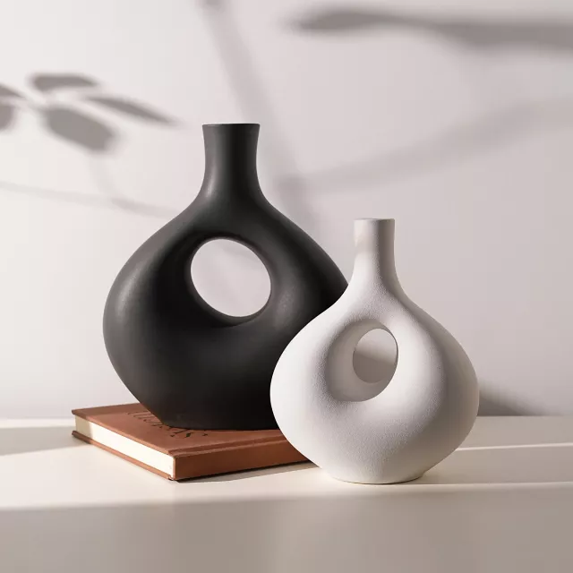 Transform your home into a haven of style and sophistication with this Modern White Geometric Ceramic Vase. Crafted from high-quality porcelain, this vase features a unique hollowed-out design that beautifully blends simplicity with artistry. Its clean white finish and striking geometric shape make it the perfect centerpiece for your living room, dining table, office, or entryway. Whether filled with your favorite blooms or displayed as a standalone accent, it instantly adds charm and refinement to any space.