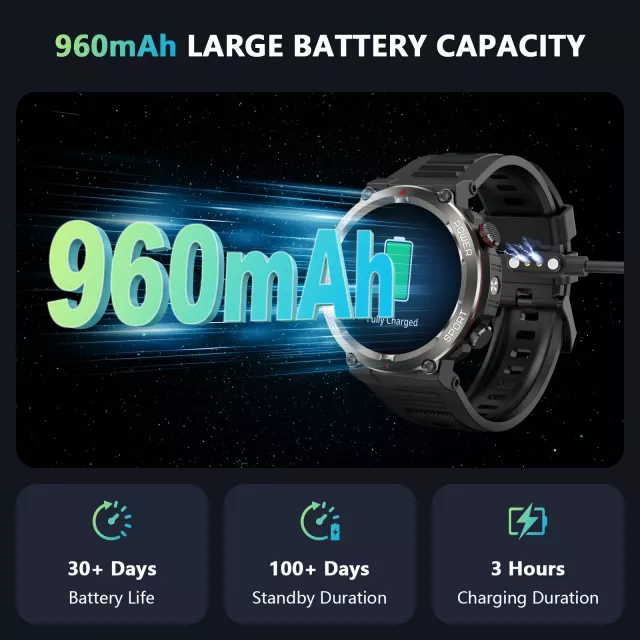 This smartwatch is best used for outdoor adventures, fitness training, busy workdays and travel when you need strong battery performance and quick access to calls and notifications. What makes it special is the combination of long-lasting power, rugged durability, advanced health sensors and an LED flashlight that adds real-world practicality. It’s more than a watch — it’s a reliable partner built to support your lifestyle wherever you go.