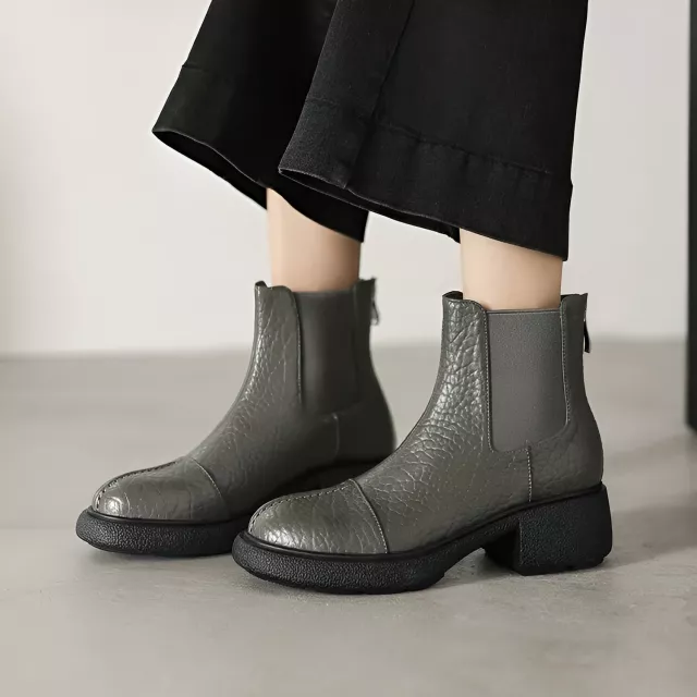 With their sleek round toe and square heel design, these ankle boots offer a flattering silhouette and reliable support for long wear. The side zipper closure allows for easy on and off, while the microfiber lining ensures a comfortable, breathable fit. A heel height of approximately 2 inches (5 cm) adds just the right amount of lift without compromising stability.