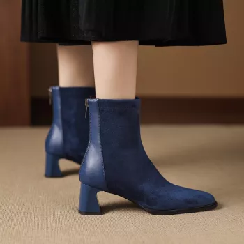 Elegant Blue Velvet Square Toe Ankle Boots for Women