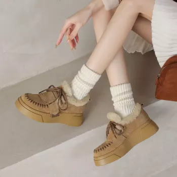 Women’s Warm Cow Suede Winter Snow Boots with Cozy Shearling Lining