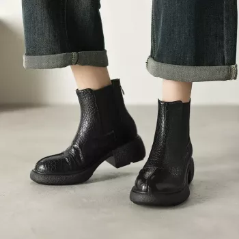 Retro High Heel Leather Ankle Boots for Women – Winter Fashion