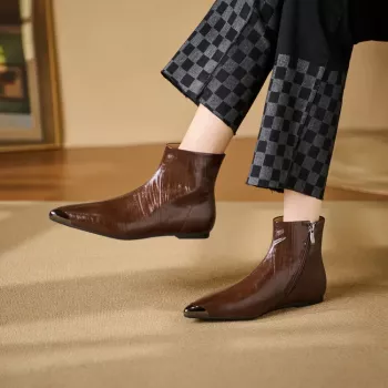 Winter Women Metal Pointed Toe Low Heel Ankle Chelsea Boots