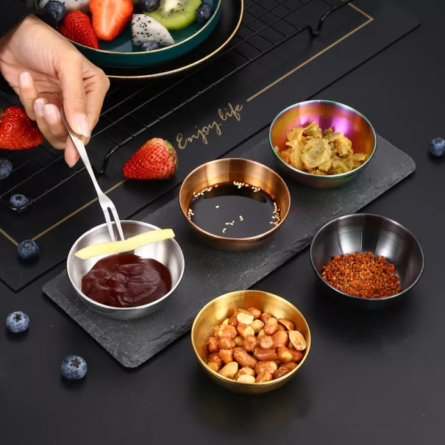 From barbecue parties and family dinners to restaurant service and outdoor picnics, this seasoning dish fits seamlessly into any setting. The compact design allows for easy stacking and storage, saving you valuable kitchen space. With multiple color options—silver, gold, and rose gold—you can match your dishware or add a pop of elegance to your table presentation.