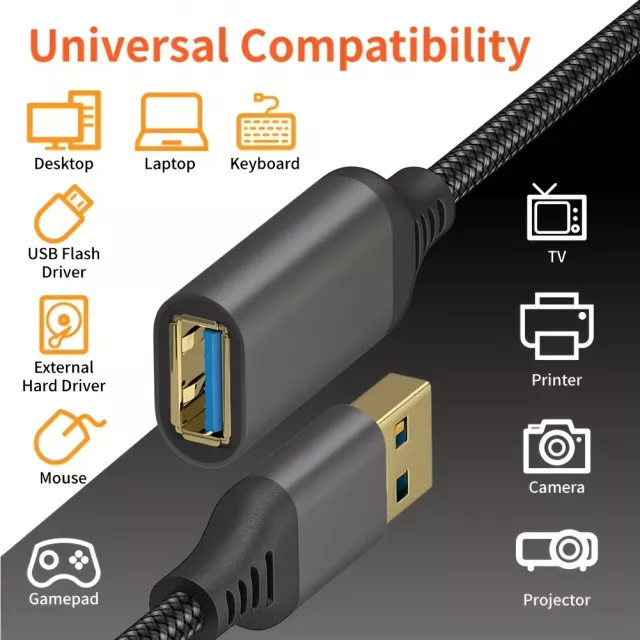 Upgrade your setup with this reliable USB 3.0 extension cable designed for smooth, high-speed data transmission. Whether you’re connecting a camera, computer, TV, or gaming device, this cable gives you the extra reach you need without slowing down performance. I