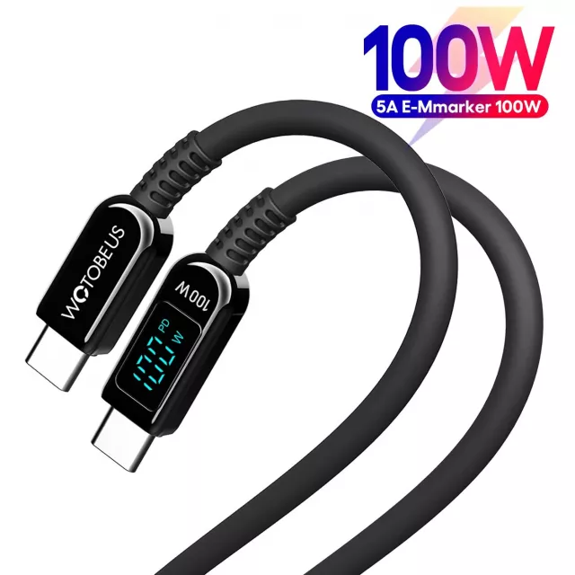 USB-C to USB-C Fast Charging Cable with LED Power Display 100W