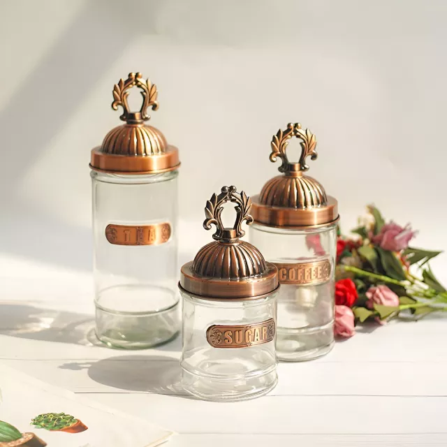Crafted from high-quality glass, this jar offers excellent visibility so you can easily see what’s inside. Its secure sealed lid helps keep contents fresh, making it ideal for everyday kitchen use. The combination of clear glass and a decorative metal top gives it a unique vintage look that stands out in both modern and traditional interiors.