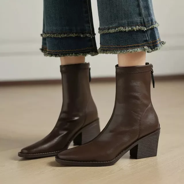 Crafted from premium microfiber leather with a soft pigskin insole, these boots deliver unmatched comfort and durability. The square toe design and 6.5 cm (2.5 in) square heel add a modern touch that flatters every silhouette, while the zip closure ensures a secure and easy fit. The rubber outsole offers excellent grip, giving you stability and confidence wherever you go. Each pair is handmade with care, showcasing fine stitching and attention to detail that you can both see and feel.